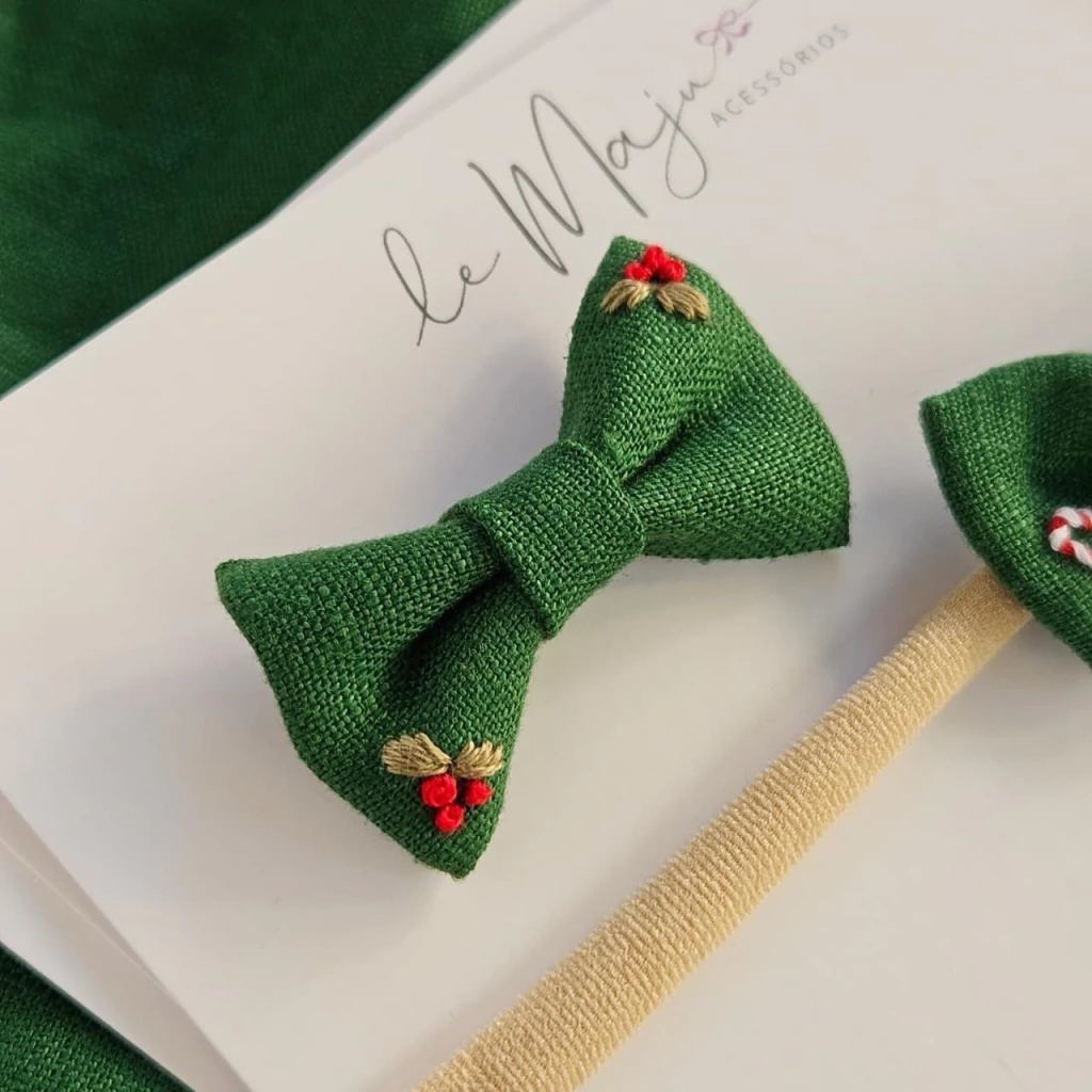 Duplinha de Lara e Alice feitos no linho puro cor verde pinheiro