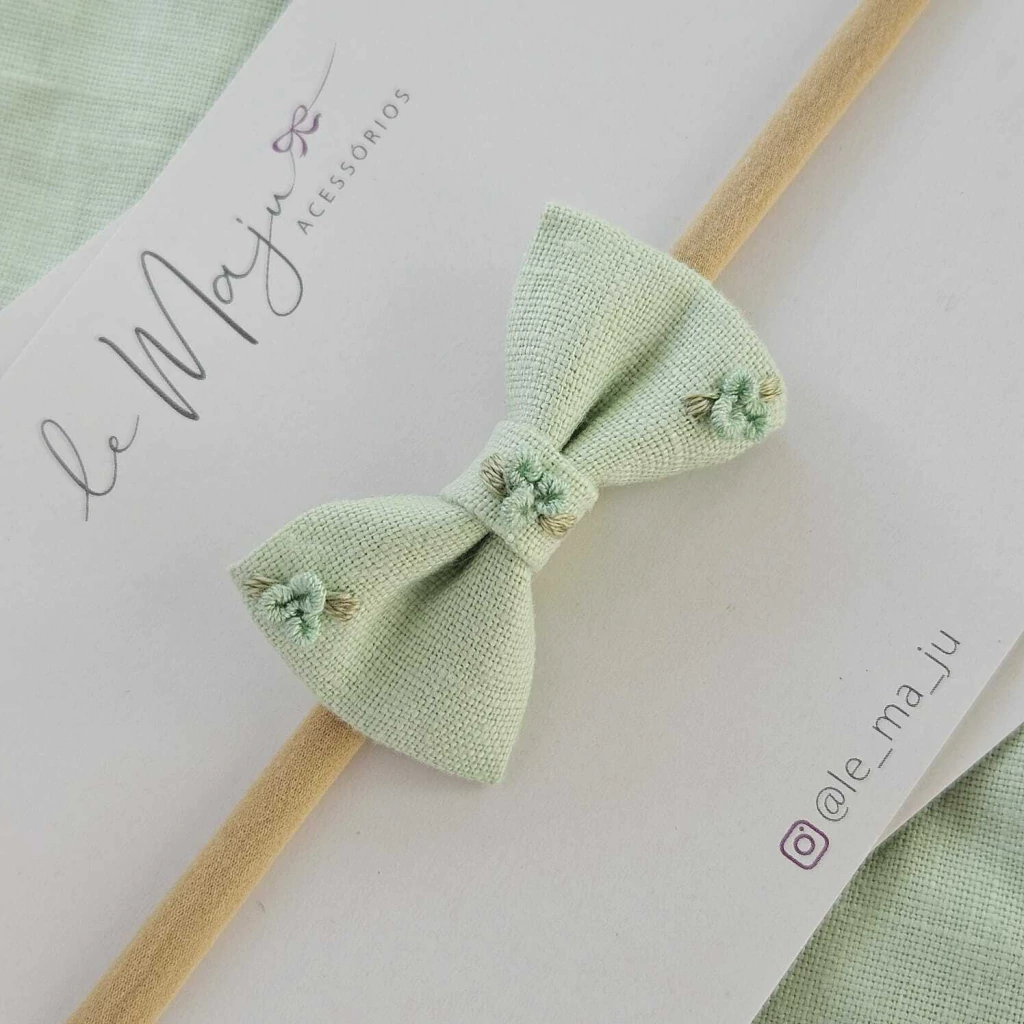 Para o primeiro aninho de vida, recomendamos a faixinha de nylon. Ela é super confortável e estica bastante, sem risco de apertar a cabecinha da sua bebê.