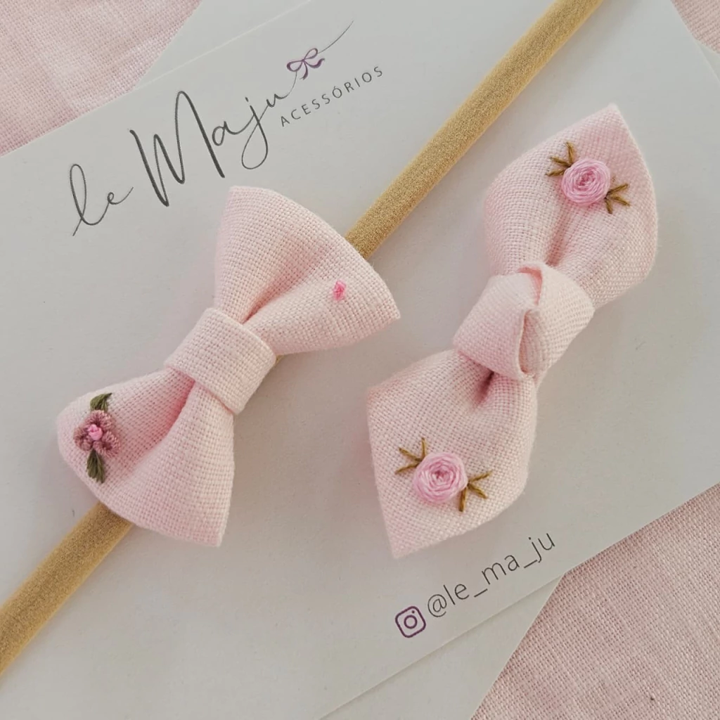 A partir de 1 ano de idade, se a sua pequena já tiver bastante cabelinho, indicamos os lacinhos no bico de pato todo encapado. Depois, conforme for crescendo mais um pouquinho, pode usar também os lacinhos no bico semi encapado.