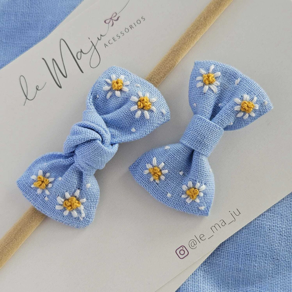 Duplinha de Lara e Alice feitos no linho puro cor azul céu