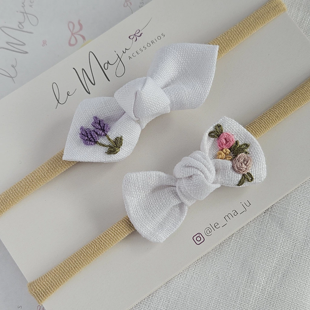 Modelinhos Cecília e Lara feitos no linho puro branco