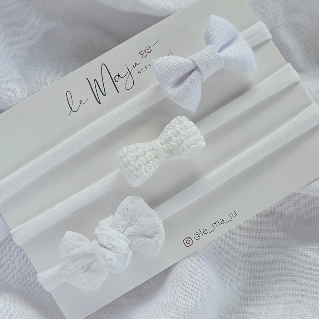 Trio de lacinhos compostos pelos modelos Alice, Maju e Lara.