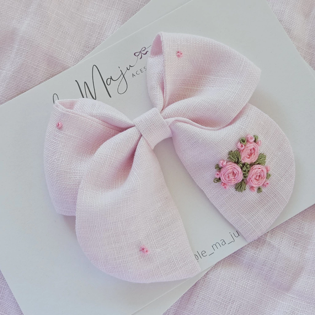 Se a sua pequena já tiver bastante cabelinho, indicamos os lacinhos no bico de pato todo encapado. Depois, conforme for crescendo mais um pouquinho, pode usar também os lacinhos no bico semi encapado.