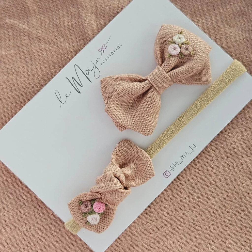 A partir de 1 ano de idade, se a sua pequena já tiver bastante cabelinho, indicamos os lacinhos no bico de pato todo encapado. Depois, conforme for crescendo mais um pouquinho, pode usar também os lacinhos no bico semi encapado.